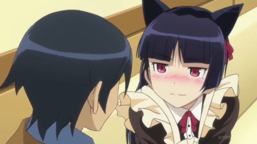 However, after the first five episodes, the show decides to take a bit of a turn. They start by giving Kirino a better relationship with her brother, a conflicting personality partner with Kuroneko, a gothic lolita teenager who can be pretentious and might have some lovely psychological issues. She does actually get a bit of a side romance with Kyosuke, but it is pretty clear that she has a hidden agenda, even though, much to her refusal to be viewed as a human, she does break down and act very selfless at times.