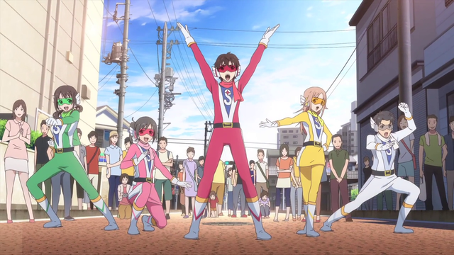 Oh, we have an Austrian in ou- What? How the hell did you come up with having an Austrian character who has no difficulty with speaking and singing Japanese? Holy crap did you miss a bucket of ideas there! Okay, he left Japan when he was six, yet why would he speak it in Austria for 12 years? He forgot everything about their culture from when he was a kid, but he still speaks the language with little to no hiccups? That is just wasteful! Although, I do need to say that having him did bring up the best part of the show, where it alludes to Super Sentai tropes by having the main five act out scenes for a shopping center.