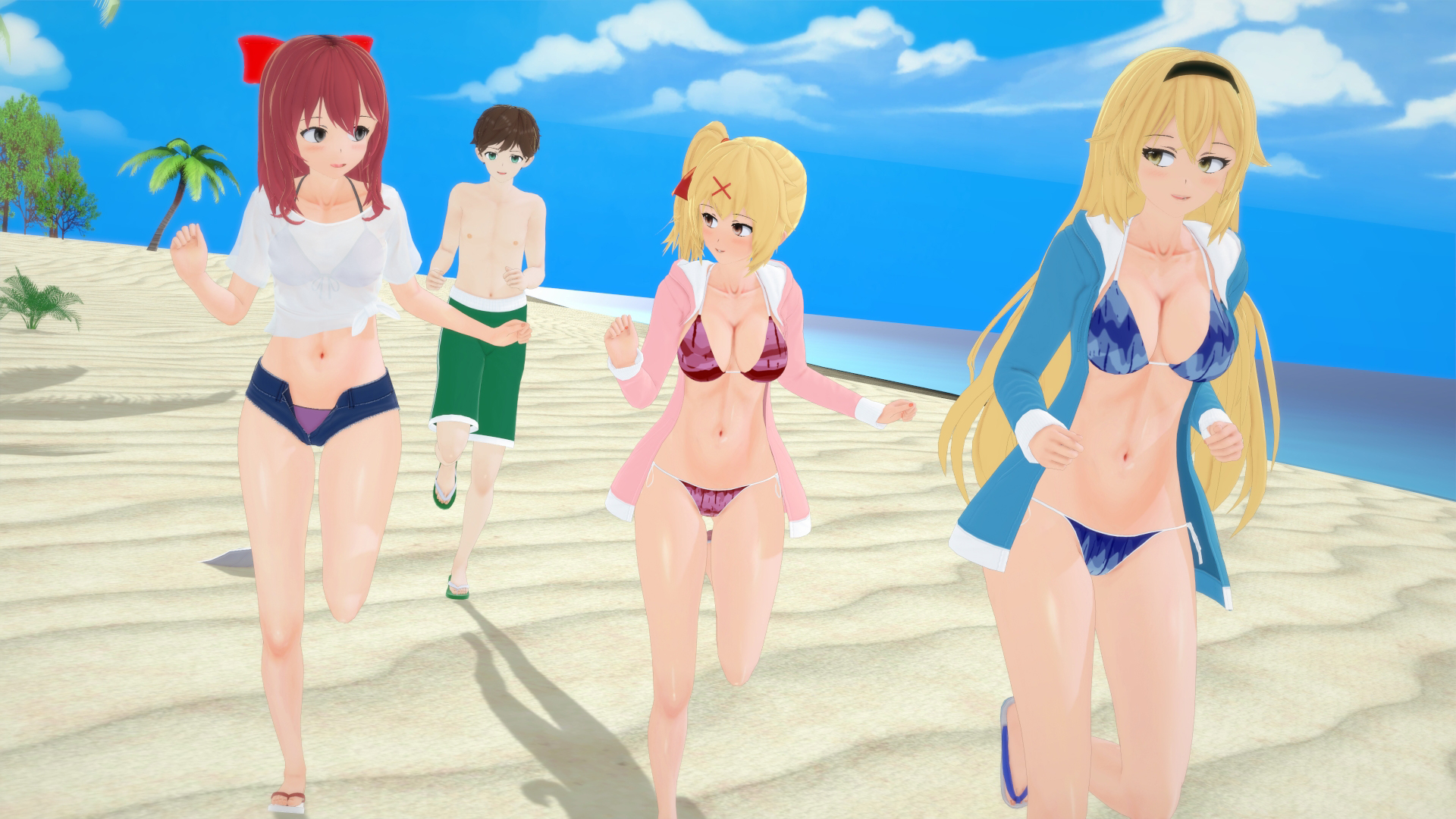 Now alone on the beach as a hot girl, Ayumu naturally gets harassed by a pair of sleazeballs who want to take them onto a boat. …Kinda like in Boku Tamasaburo, but with less jellyfish. Fortunately, Ryuji comes to save Ayumu from these thugs, and the two have the best beach day! Delicious pool snacks, volleyball, swimming on inflatable dolphins, learning how to swim with flotation devices, and giving Ryuji sand titties.