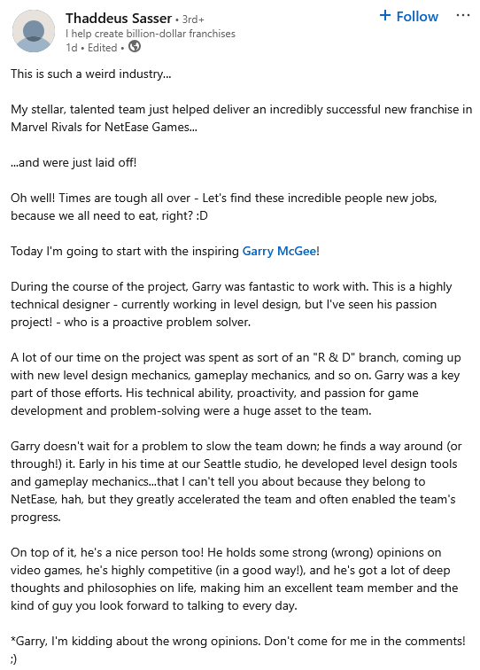 NetEase indulged in layoffs of a Seattle-based support team working on Marvel Rivals, including someone who claims to have been a game director on the title. The developers affected by this have claimed they were employees of NetEase Games, but I would guess that they technically worked for the Seattle-based NetEase subsidiary Anchor Point Studios. This could represent the beginning of a mass exodus of NetEase from the American market, destroying hundreds of jobs and leaving professionals with nothing to show for the time they spent at these studios. Well, other than uncredited support studio work and big juicy gaps in their resumes.